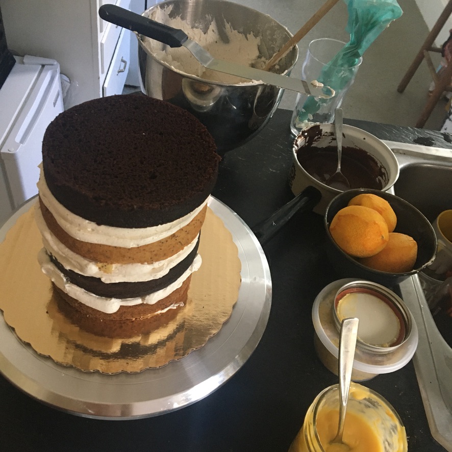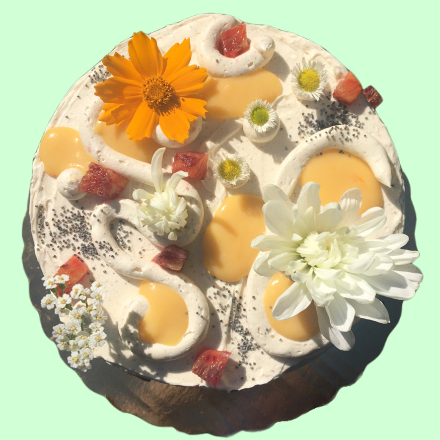 essential bobbie bday cake :) blood orange poppyseed cake, chocolate miso cake, blood orange curd, dark choco ganache, cardamom brown butter buttercream ya!