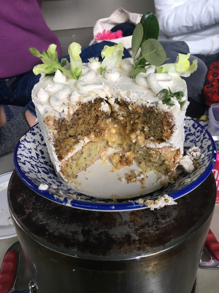 Blood orange poppyseed cake, blood orange curd, cardamom brown butter buttercream.